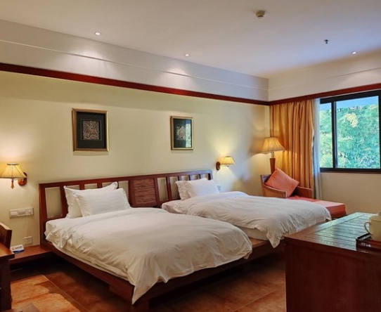 国内长途电话、国际长途电话、拖鞋、书桌、24小时热水、电热水壶、洗漱用品(6样以上)、瓶装水、迷你吧、小冰箱、浴衣、多种规格电源插座、110V电压插座、吹风机、中央空调、湖景、花园景、山景、私人温泉