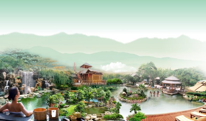 全新的日式建筑风格,每间客房都配有独立的私家温泉泡池,是泉眼温泉一大特色。泉眼温泉内设有汇聚各类风格的温泉浴池50余个,其中主水区有泉眼神汤泉中泉大浴池一个,各种特色小池有七星伴月、鱼疗池、热石板浴、热矿沙浴、花草池、香薰池、咖啡池、红酒池、牛奶浴等,还有中药谷的陈皮池、木爪池、柠檬池、芦荟池、菊花池、红花池、乌须池、首乌池、人参池、灵芝池、更有设计新颖的温泉瀑布、果味干蒸、中药浴湿蒸、自生汗蒸沐浴,充满神秘色彩的溶洞泉,人体皮肤可直接吸收各种微量元素,倍感舒适,周身通泰。处于闹中取静的观景亭,俯瞰温泉的一景一致,伴有古典乐器的演奏,让舒适感在这里得到升华。