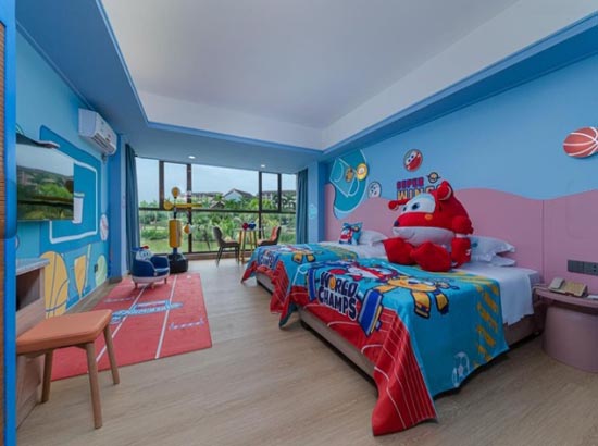 酒店占地面积很大,有湖泊有园林。房间还是很宽敞,有阳台、有沙发的标间,干净整洁。各类设施齐全,娱乐项目多,有桌球,棋牌室等等。这里还是摄影基地,拍照很出片,环境好逛逛悠悠很舒服小孩也很喜欢,最喜欢水上乐园,滑滑梯很多款式!