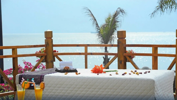 珠海海泉湾海洋温泉度假区特别推出的阳台早餐,美景美食,独享悠然与惬意。酒店设有私人会所,提供SPA、香熏理疗等服务,并配备卡拉OK,棋牌室,室内、外游泳池,健身房等设施。配合景区内的其它娱乐项目,如主题公园、电子游戏、电子竞技、水上泛舟、室内篮球、羽毛球、壁球、室外网球多项活动,满足宾客娱乐、休闲的需求。
