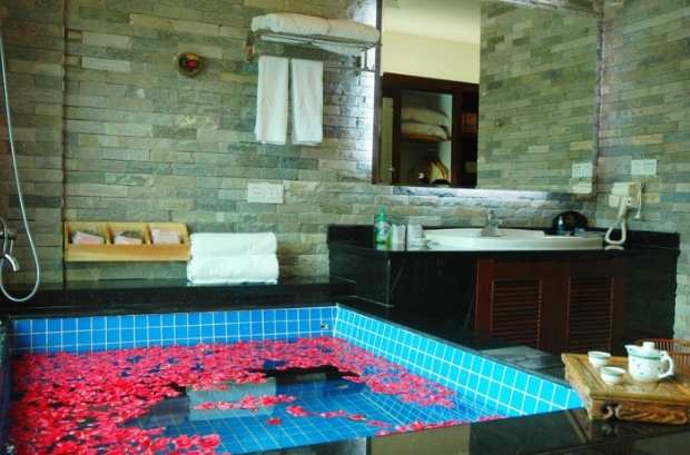 主楼装修,安排了欧陆别墅的一个房间,这里就离温泉区很近了,走五十米就到了!温泉池多,不同水温池安排合理,还有冲浪池和水上篮球,很不错,晚上灯光全开,喷泉也开感觉更加好。服务很好,早餐丰富。