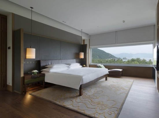 酒店的建筑,简约而带有中式美学的气息,怀趁着各种寓意的艺术品,随处可见。茂盛的绿植包围着整个酒店,走出建筑,便来到了酒店的庭院。房间内有一股淡淡的清香,房间很大,床品很干净,洗护用品也非常舒适。设计中,融合了光线和水的灵动,空间在不同的时间与光线下呈现出不同的风貌。大量的水面,平静无声的淌过酒店各个角落。
