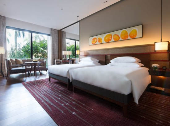三亚太阳湾柏悦酒店建筑群沿着优美的私家海滩成拱形排列,彷如一串璀璨明珠,前面是壮丽磅礴的南中国海风光,后面是郁郁葱葱的青山茂林。酒店精致优雅的室内装饰无不体现出一种微妙的东方优雅,拥有雅适并俱的百余间望海客房,配备现代化完善设施,与柏悦一贯的亲切服务相互交融,致力为客人提供巧妙细致的个人化服务。