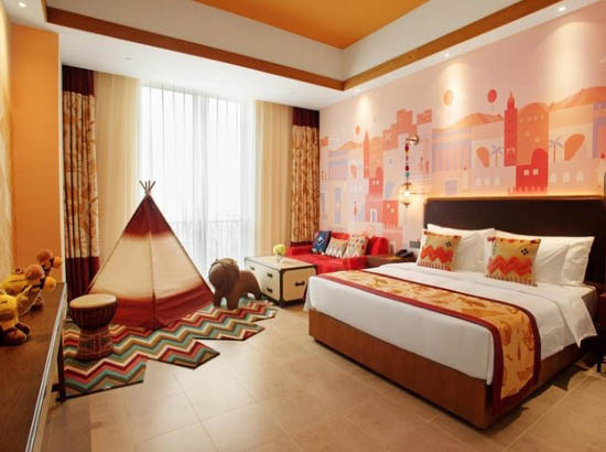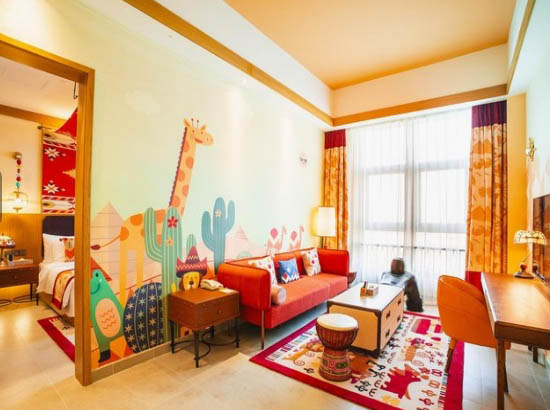 【希尔顿亲子房】酒店坐落于海花岛核心区域,环境优美。房间干净整洁,舒适,洗漱用品齐全。美丽的夜景,住在酒店里就能拍摄到的美景!去美食街,购物街,看灯光秀及敦化表演等。早餐厅的服务员,也是热情周到服务,端来牛奶咖啡果汁等,让人有回家的感觉。