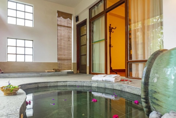 环境好,水上别墅、天鹅的自由游弋给视觉带来享受。露台是看天鹅喂鱼,露台内泡私池,还有热床,房间够大。小木屋别墅带了个圆形的浴缸,在浴缸里泡很舒服,适合一家三口。