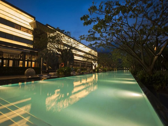 酒店的建筑,简约而带有中式美学的气息,怀趁着各种寓意的艺术品,随处可见。茂盛的绿植包围着整个酒店,走出建筑,便来到了酒店的庭院。房间内有一股淡淡的清香,房间很大,床品很干净,洗护用品也非常舒适。设计中,融合了光线和水的灵动,空间在不同的时间与光线下呈现出不同的风貌。大量的水面,平静无声的淌过酒店各个角落。